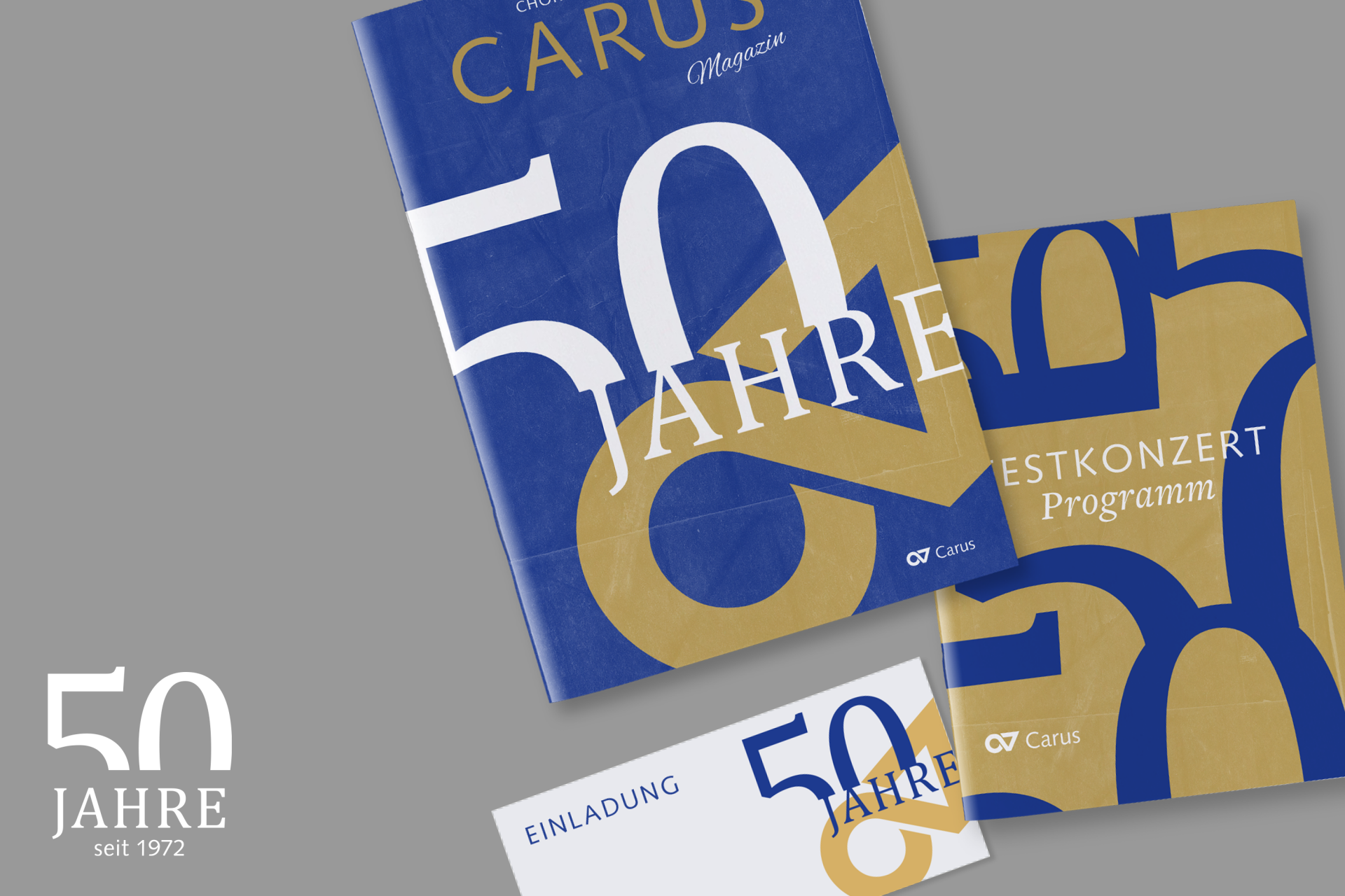 50 Jahre Carus-Verlag – gegründet von Chorleiter Günter Graulich im Jahr 1972, wurde das Jubiläum ganzjährig im Jahr 2022 mit verschiedenen Aktionen gefeiert. Als Highlight wurde ein Festkonzert veranstaltet und verschiedene Werbemittel begleitend entwickelt. Im Rahmen eines einheitlichen Konzepts wurde ein elegantes, firmenspezifisches Design mit einer übergreifenden Wortmarke entwickelt.